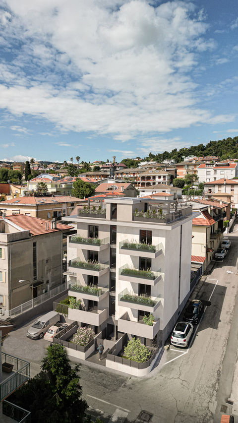 Nel cuore di San Benedetto del Tronto, Residenza F66 è una nuova proposta abitativa pensata per coniugare qualità architettonica, funzionalità e benessere quotidiano. Il progetto si sviluppa su cinque livelli fuori terra, con due appartamenti per piano di circa 60 mq ciascuno, progettati con attenzione all’ottimizzazione degli spazi e all’ingresso di luce naturale.